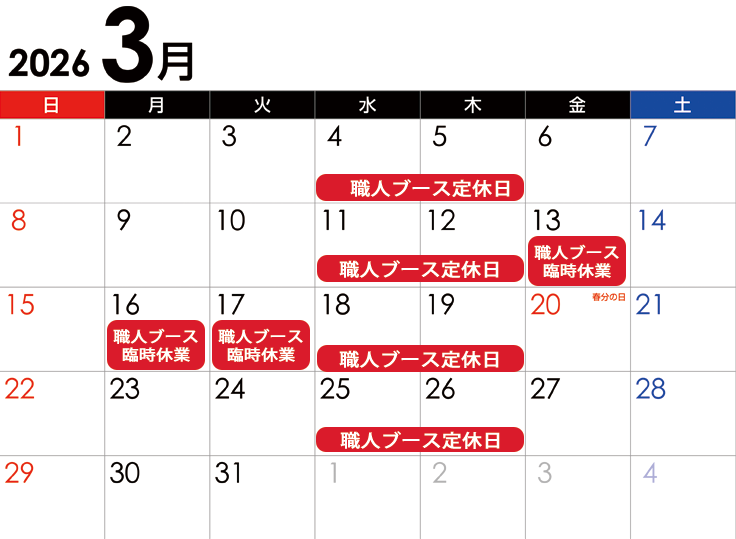 *職人ブースはオープン日でも職人が不在の時間があります。