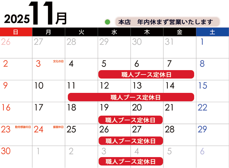 11月の店舗休業日