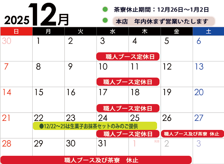 12/3(水)、12/7(日)、12/10(水)、12/14(日)、12/17(水)、12/21(日)、12/24(水) |
